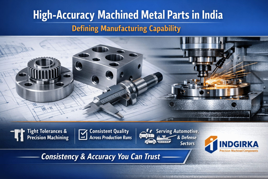 High-Accuracy Machined Metal Parts in India Define Manufacturing Capability Why accuracy now determines manufacturing credibility For manufacturers, high-accuracy machined metal parts in India are no longer a specialised offering; they are a standard requirement. Engineers and sourcing teams assess accuracy through part fitment, machine behaviour, and the absence of recurring issues on the shop floor. As designs become more compact and tolerances tighten, small dimensional errors increasingly lead to fitment problems, premature wear, or operational failure. Manufacturers are evaluated not only on output and price, but on their ability to match drawings exactly across production runs. This places clear emphasis on machining discipline, process control, and direct ownership of quality during production. Accuracy is expected to be built into the machining process itself and not addressed later through inspections, reports, or corrective documentation. How Indgirka Delivers High Accuracy Machined Metal Parts in India Engineering practice translated into repeatable machining results. At Indgirka, high accuracy machined metal parts in India are produced through machining practices overseen by experienced engineers. The company works with CNC milling and turning operations that are planned around part drawings, material behaviour, and required tolerances. Machining is carried out with a clear understanding of how components will be used, assembled, and loaded in real applications. Instead of treating each operation in isolation, machining, finishing, and inspection activities are aligned to ensure dimensional consistency across production runs. Grinding and surface finishing are applied where required to meet functional and fitment needs, not as cosmetic steps. This approach supports the supply of machined components for automotive systems, industrial equipment, defence applications, and electrical assemblies, where accuracy directly influences performance. Here, accuracy is achieved through preparation, machine setup, and execution at the machining stage, rather than relying on corrections after parts are produced. Indgirka Delivering Consistency in High Accuracy Machined Metal Parts in India Why long-term manufacturing relationships are built on execution, not promises For organisations sourcing high accuracy machined metal parts in India, long-term confidence comes from consistent delivery that performs as expected on the shop floor. As production shifts from initial orders to repeat volumes, buyers rely on manufacturing partners that understand requirements, maintain tight tolerances, and deliver consistently without constant oversight. At Indgirka, this reliability is demonstrated in how customer specifications are carried through successive production runs without drift. Components are expected to fit as designed, perform reliably in service, and hold their dimensions as order quantities and schedules change. This consistency simplifies planning for procurement and engineering teams, limits downstream disruptions, and supports stable manufacturing operations over time. In practice, dependable manufacturing relationships are built on the ability to deliver consistent results across repeated production cycles.